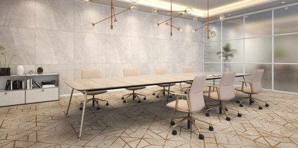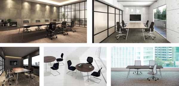 来客ルームは、会社の顔として第一印象を決める重要な役割を担っています。特に部屋に通された時に目が行きやすいテーブルは、空間全体の雰囲気を左右します。そこで「空間の品格を高める」をコンセプトに開発した「インテオ」を発売し、来客ルームのようなおもてなしの場で信頼感を与える空間づくりをご提案します。