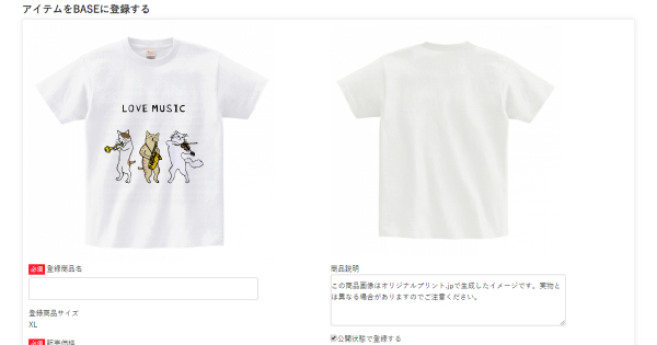 BASEで解説したショップに出品されたアイテムをオリジナルプリント.jpで制作するときは、通常同一アイテムをオリジナルプリント.jpでご注文頂く価格から5%お値引きします。