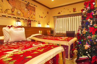 お部屋にはキラキラと輝くオーナメントや星いっぱいのデコレーションで飾られ華やかな雰囲気にクリスマス気分も盛り上がります。