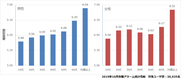 株式会社C2(シーツー)(東京都文京区湯島 代表取締役 安田昭夫)は2019年11月15日、自身が運営する睡眠管理アプリ「熟睡アラーム」の利用状況に基づく睡眠の統計調査を公開しました。