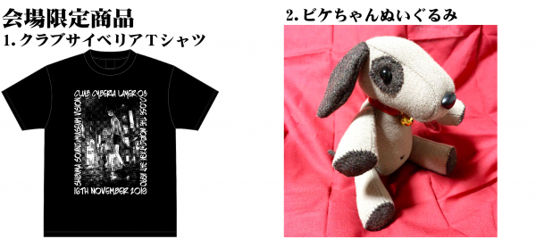 そのメインビジュアルを使用した会場限定のクラブサイベリアTシャツや、他にもビケちゃんのぬいぐるみの頒布、ドリンク購入特典としてランダムでポストカード(3種)を配布など盛りだくさんな内容となっています!