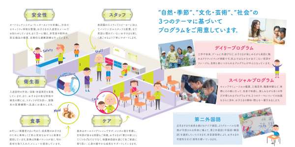 ネイティブスピーカによるオールイングリッシュ環境に加えて第2外国語(中国語・韓国語)の選択を行い、より多くの異文化理解を深めることで、子どもたちの思考の選択肢を広げます。(※基本カリキュラムの中で英語+第2外国語実施)