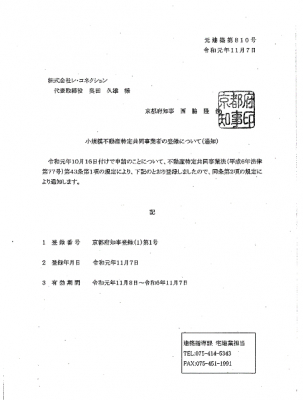 京都市内において不動産売買や宿泊施設の管理運営を行う株式会社レ・コネクション(本社:京都市下京区 代表取締役:奥田久雄)は、京都府内で初となる「小規模不動産特定共同事業者」の登録を令和元年11月7日に完了しました。