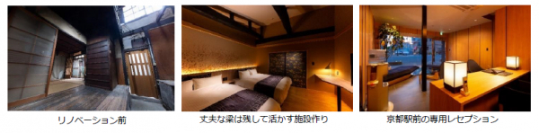 当社は多くの文化的価値を持つ「京町家」を次の世代に受け継ぐべきものであると考え、外観や内観の趣や意匠をできるだけ残し、一日一組限定の一棟貸し宿泊施設として再生する取り組みを行っております。