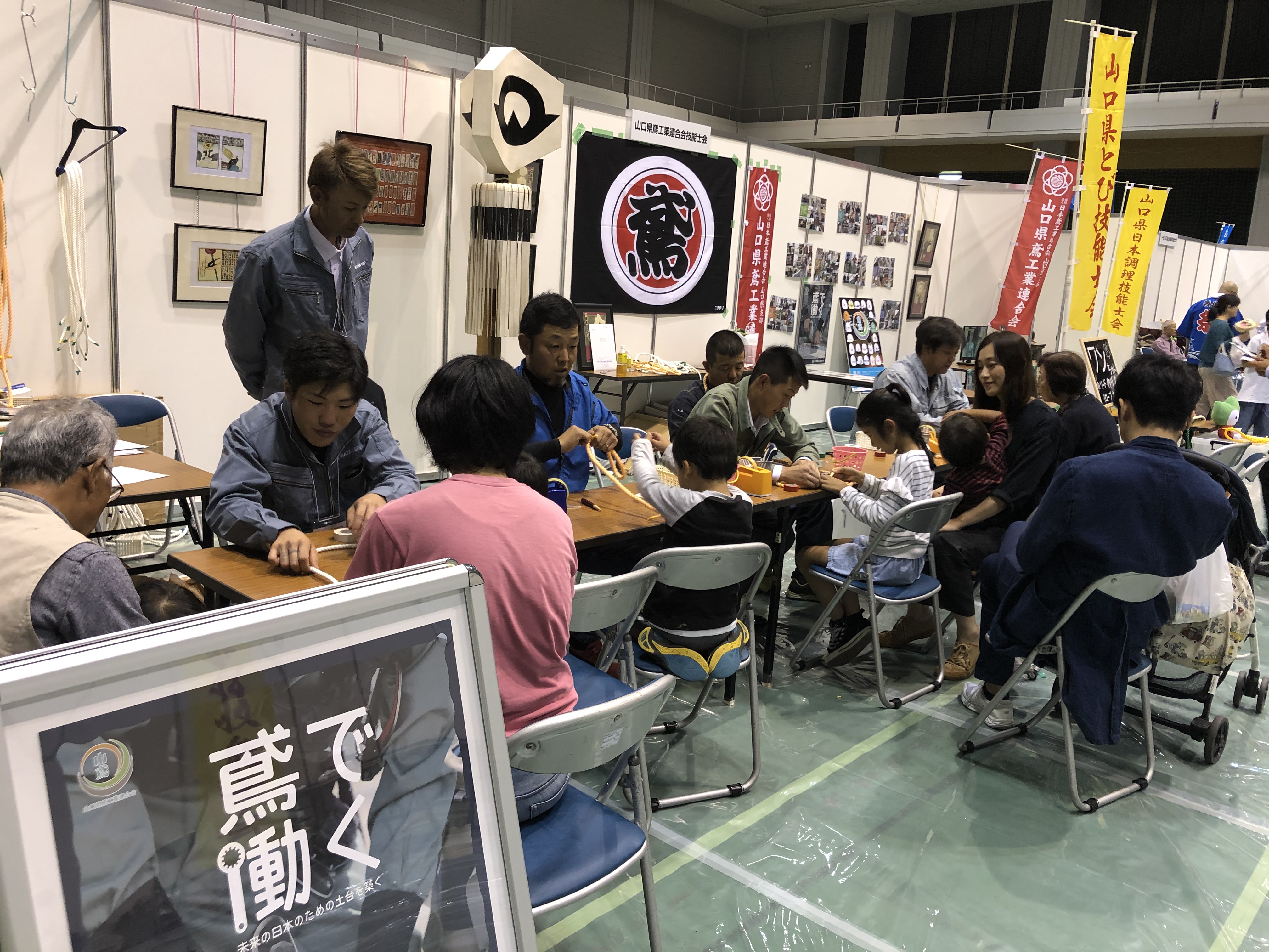 結団式の後、会社が所属する専門工事業団体「山口県鳶工業連合会」が参加する、「ものづくり体験フェア」に指導者として参加しました。