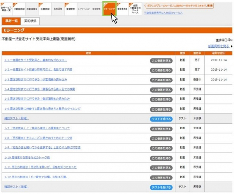 全12回の講義とまとめテスト付き。講義時間は8分以内なので、隙間時間にご覧いただけます。一括査定サイトを利用した反響対応の基礎から、専任媒介契約の受託法までをわかりやすく学ぶことができます。更に、反響のお客様からの応酬話法も伝授するなど、不動産仕入れの成約率を高めるノウハウが満載の講義内容となっています。