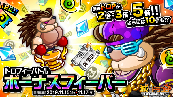 株式会社アソビズム(本社:東京都千代田区、代表取締役:大手智之)は、App Store・Google Playにて好評配信中の『城とドラゴン』で、「トロフィーバトル ボーナスフィーバー」を2019年11月15日(金)より開催いたします。