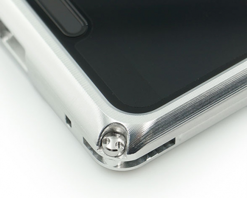 ジャケット素材は、航空機にも使われる強固な「ジュラルミンA2017」と、さらに硬質で輝きが美しい「超ジュラルミンA2024」を使用。バンパーのカラーは、シャイニーシルバー・ブラックの2色。本体はジュラルミンの塊からの削り出しで、手仕上げで磨き上げます。フルカバータイプのバックパネルは、リアルカーボンファイバー(シルバーとブラック)とブラックシュリンクレザー、クロコ型押し天然牛革(ブラック、ブラウン)の5タイプです。
