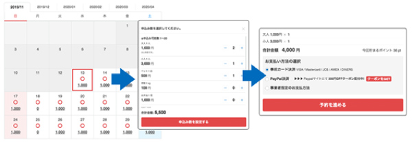 【2】「予約する」ボタンを押し、カレンダーよりご希望の参加日時と人数を選択