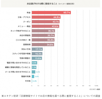 お店を選ぶ際の重視点について調査を実施(エキテン総研)