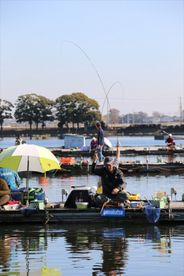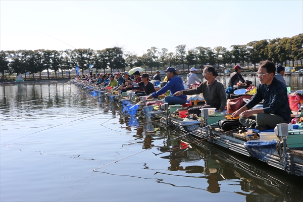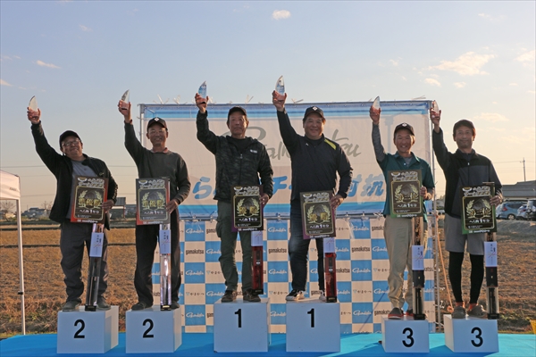 この日は日が昇っていくにつれて気温も上がり、2回戦が始まるころは長袖では暑いぐらいの小春日和に。これに合わせてへらぶなの活性も徐々に上がり、2回戦は1回戦から一転して激しい釣り合いとなった。各選手がハイペースで追い上げる中、石井・櫻井ペアも1回戦の勢い以上のハイペースで釣りまくり、合計で驚異の45.81kgの釣果を上げて2回戦でも全体のトップとなり、見事な完全優勝を飾った。1回戦で2位につけていた礒貝・小原ペアも優勝ペアと同じく釣りまくって合計40.52kgと全体で2位の釣果を残し、終わってみれば1回戦で1位・2位のペアが、2回戦でも同順位となりそのまま逃げ切るという展開で終了した。