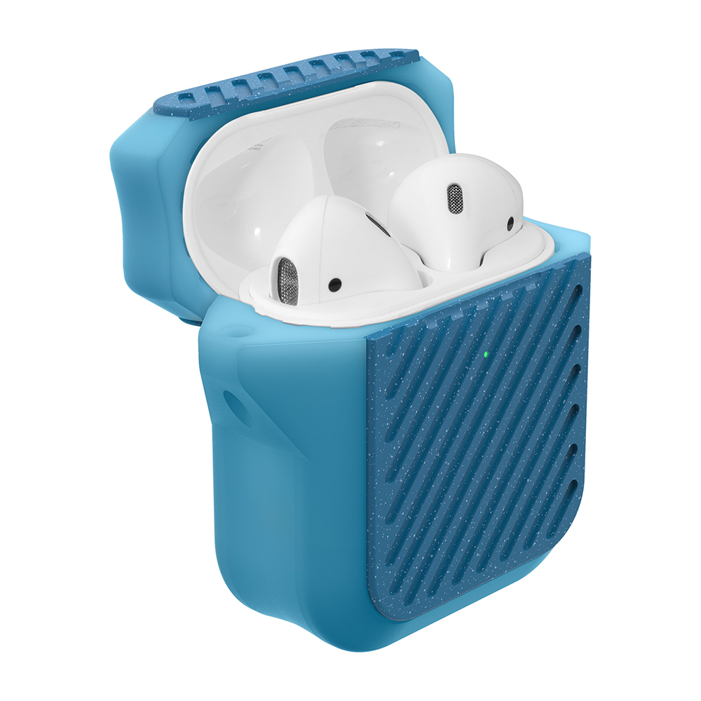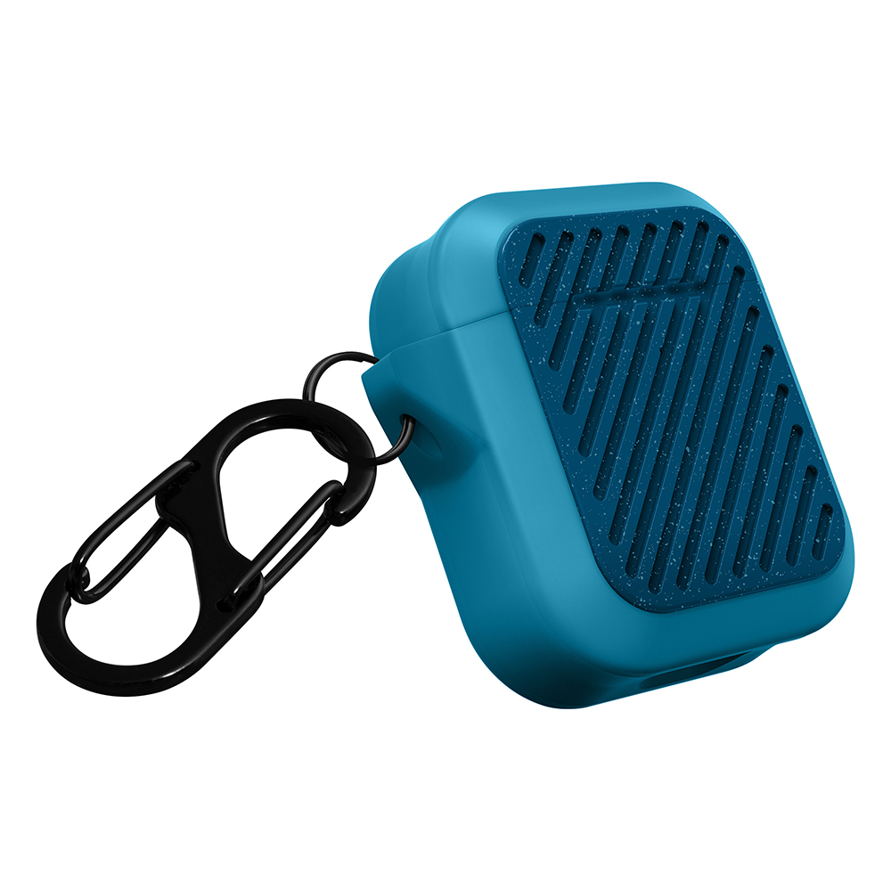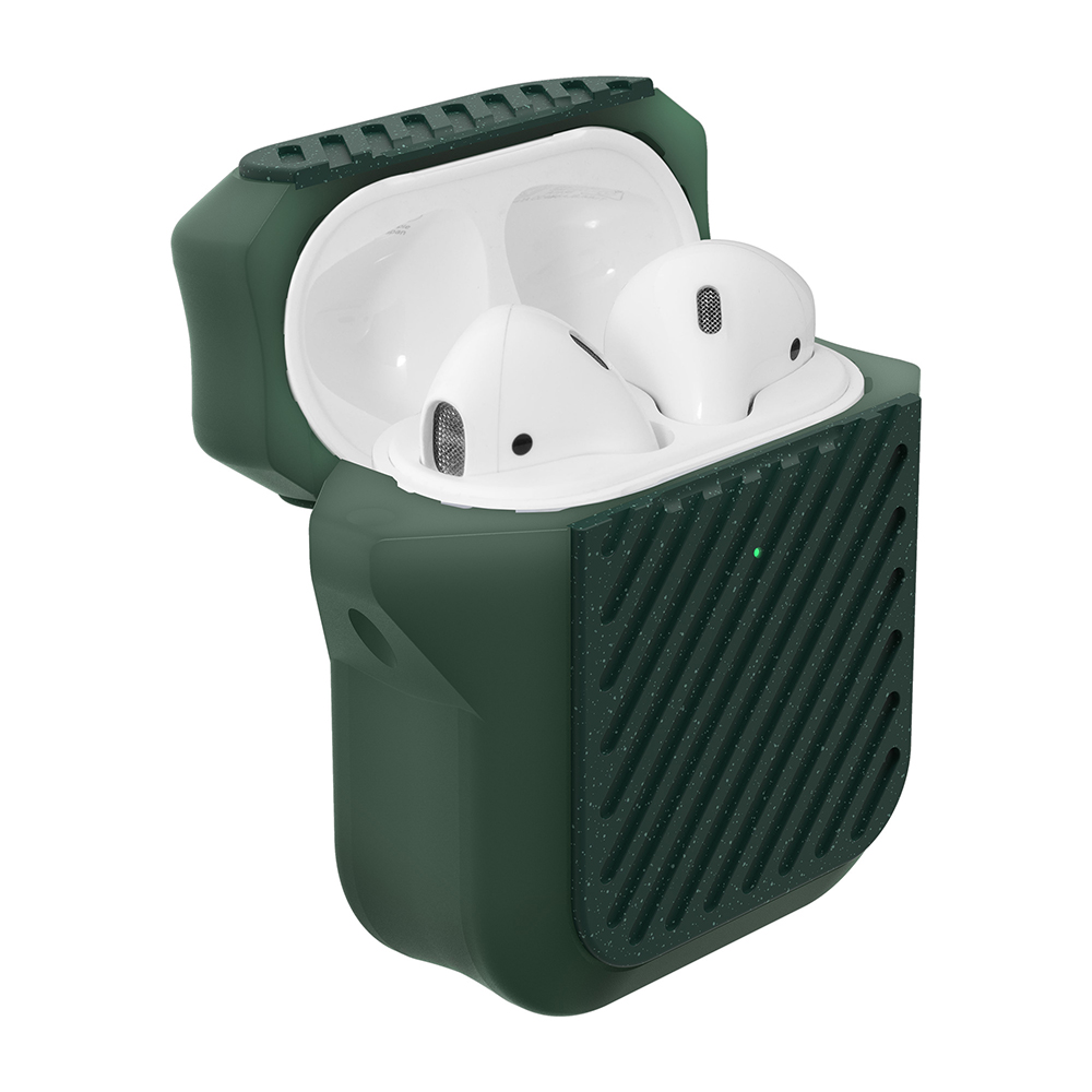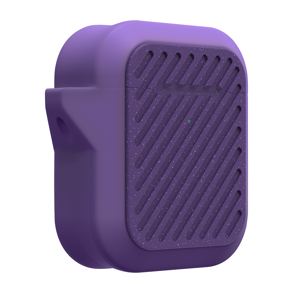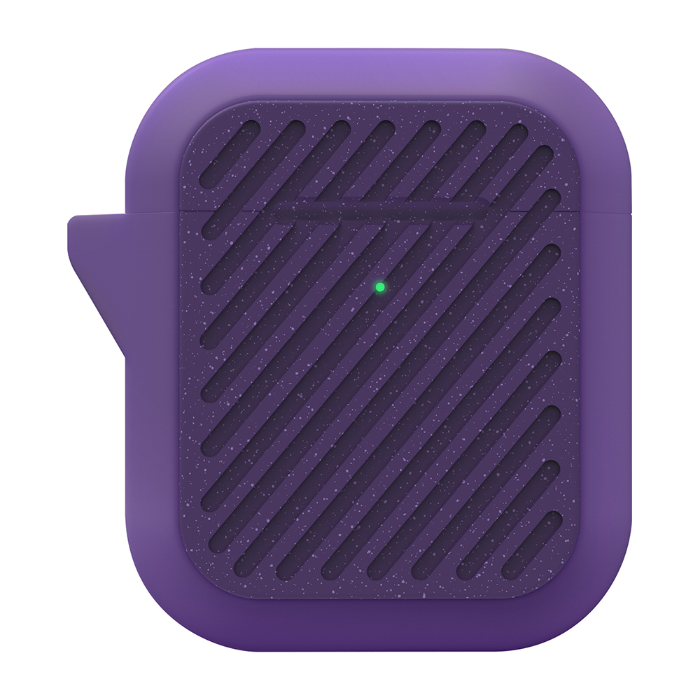ゴルフボールにも使われる衝撃エネルギーを吸収分散する高分子素材に硬質ポリカーボネートパネルを埋め込んだハイブリッド構造。内部のコアが硬く、外部は適度な柔らかさと弾力性があり、4mの落下テストをクリア、ショックを吸収してAiPodsを守ります。
