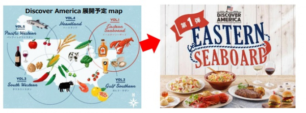 フェアのスタートとなる第一弾は、かつて入植者が初めて降り立ったアメリカ東海岸北部「Eastern Seaboard」をテーマにしました。緑の山々に囲まれ、チェサピークベイと大西洋に面し、ロブスターやカニ等の水産物、ベリー類などの果物、野菜、乳製品等、四季を通じて様々な食材が豊富なエリアです。また首都ワシントンDCやニューヨークといった政治経済の中心となる大都市を擁し、アメリカ国内では食文化も含め、スタイリッシュで洗練されたエリアと考えられています。