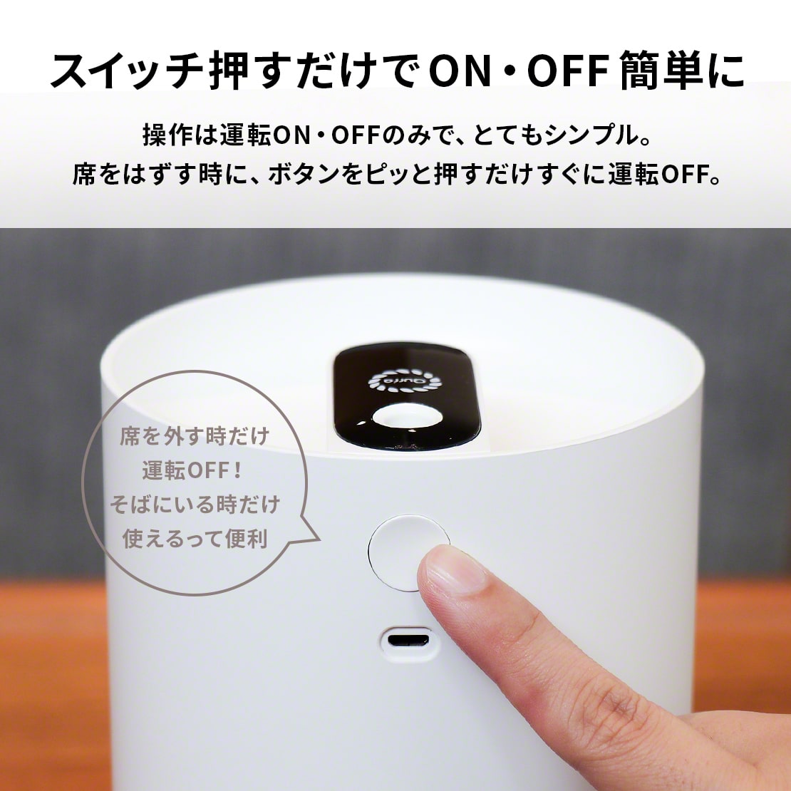 スイッチを押すだけでON/OFFが切り替えられるシンプルな操作で、使い方も簡単。