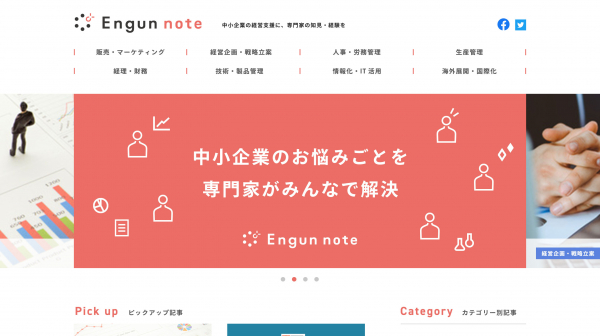 「Engun note(エングンノート)」は、シニア専門家がこれまでの中小企業支援の経験から得られた知見を、中小企業が経営課題解決のヒントに活用することを目的にリリース。人手不足などを背景とする生産性向上への取組、労働基準法改正等への対応をはじめとする働き方改革の実践、モチベーション低下に伴う離職対策など中小企業が抱えるお悩みに大企業OB・OGが回答します。