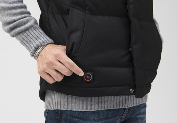 スイッチはポケットのすぐ近く。ON、OFF、温度の切り替えも簡単です。