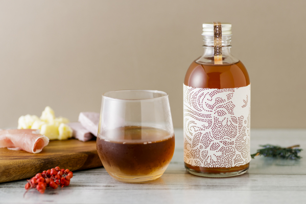 ボトルを包む白いラベルは、紀州文化の一つである型紙の梅文様。細かな文様の窓から覗いている、時をかけて色づいた琥珀色の液体。それはまさに琥珀色を愛でながら味わうための特別なデザイン。特別な日や、特別な人に、「UMESHU THE AMBER」の時間を届けてみては?