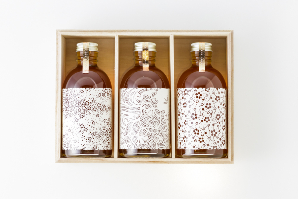 「UMESHU THE AMBER」は、山本譲農園で栽培された減農薬の南高梅を、ホワイトリカーで漬け込み低温で熟成させた本格梅酒です。10年以上も熟成させた本格梅酒の濃醇でウイスキーのような芳醇な味わいを、ヴィンテージ違いでお愉しみください。同商品は、熟成期間の違うヴィンテージ梅酒を飲み比べることができる琥珀色の高級梅酒シリーズのため、3本セットとなっています。年代ごとに色合いが違う琥珀色には、その年の梅の個性が表われています。ロックやストレートで、美しい琥珀色を愛でながら味わってみてください。紀州文化の一つである型紙の梅文様を取り入れた洗練されたデザインは、特別な日や、特別な人へのギフトにぴったりです。