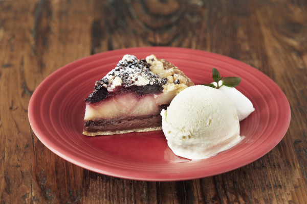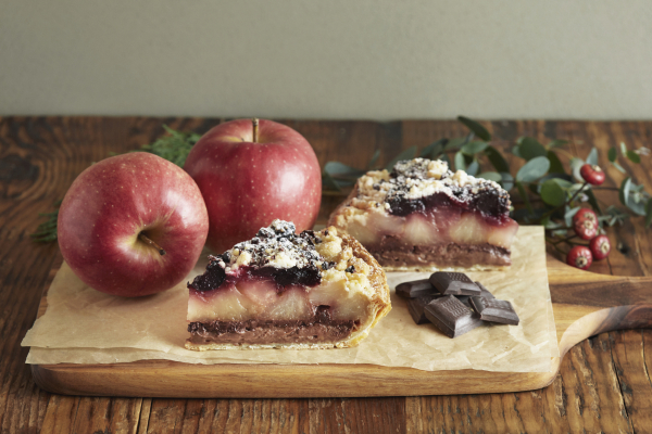 濃厚なチョコレートの力強い味わいと香り、りんごやチェリーの華やかな果実味が重なる風味豊かなパイ
