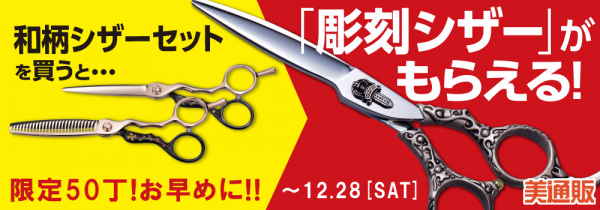 プロ向け美容材料の通信販売サイト「美通販」が、「彫刻シザープレゼント」キャンペーンを開催中です。