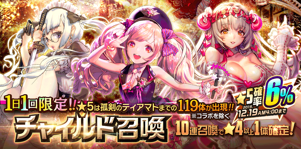 1日1回まで10連召喚できる★5確率6%チャイルド召喚が開催!