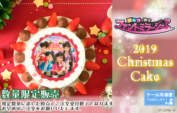 「プリロール」を運営する株式会社栄通(本社:東京都八王子市)は、『ひみつ×戦士 ファントミラージュ!』クリスマス限定デザインのプリントケーキを2019年11月19日(火)より予約受付開始いたしました。