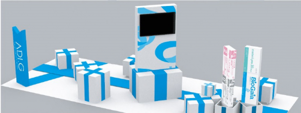 当社の出展テーマは「GIFT(ギフト)」で、ギフトボックスをイメージしたブースに、歯科医院とお客様の結びつきを深めて歯科業界全体の活性化と発展に貢献する製品・サービスを展示します。