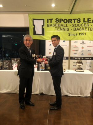今年のITサッカーリーグは決勝戦が11月24日(日)ZOZOPARK HONDA FOOTBALL AREA(千葉県千葉市)で開催され、当社は準優勝を果たしました。『2019 IT SPORTS LEAGUE 表彰式&懇親パーティー』の当日、当社はチームとして準優勝のトロフィーを授与され、個人としてはゴールキーパーを除くすべてのポジションにてベストイレブンに選出していただきました。また、個人賞も部員2名が受賞しました。
