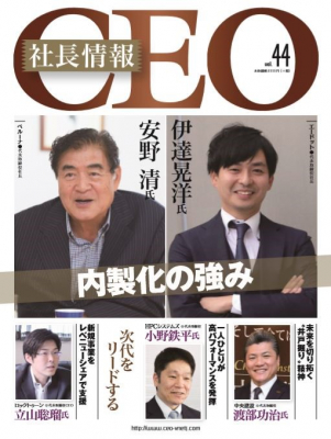 『CEO社長情報』は、元『週刊ダイヤモンド』編集長で、生前のピーター・ドラッカー氏をはじめとして数多くの国内外の経営者にインタビューした株式会社ブイネット・ジャパン 代表取締役社長の松室哲生氏が編集人となり、隔月刊で経営者向けに発刊している雑誌です。今勢いのある企業を直接取り上げる内容で、多くの経営者の方々に読まれ、企業間のビジネスマッチングを促進しています。当社は、本誌をVol.30(2017年3月31日発売)から松室氏と共に刊行しております。
