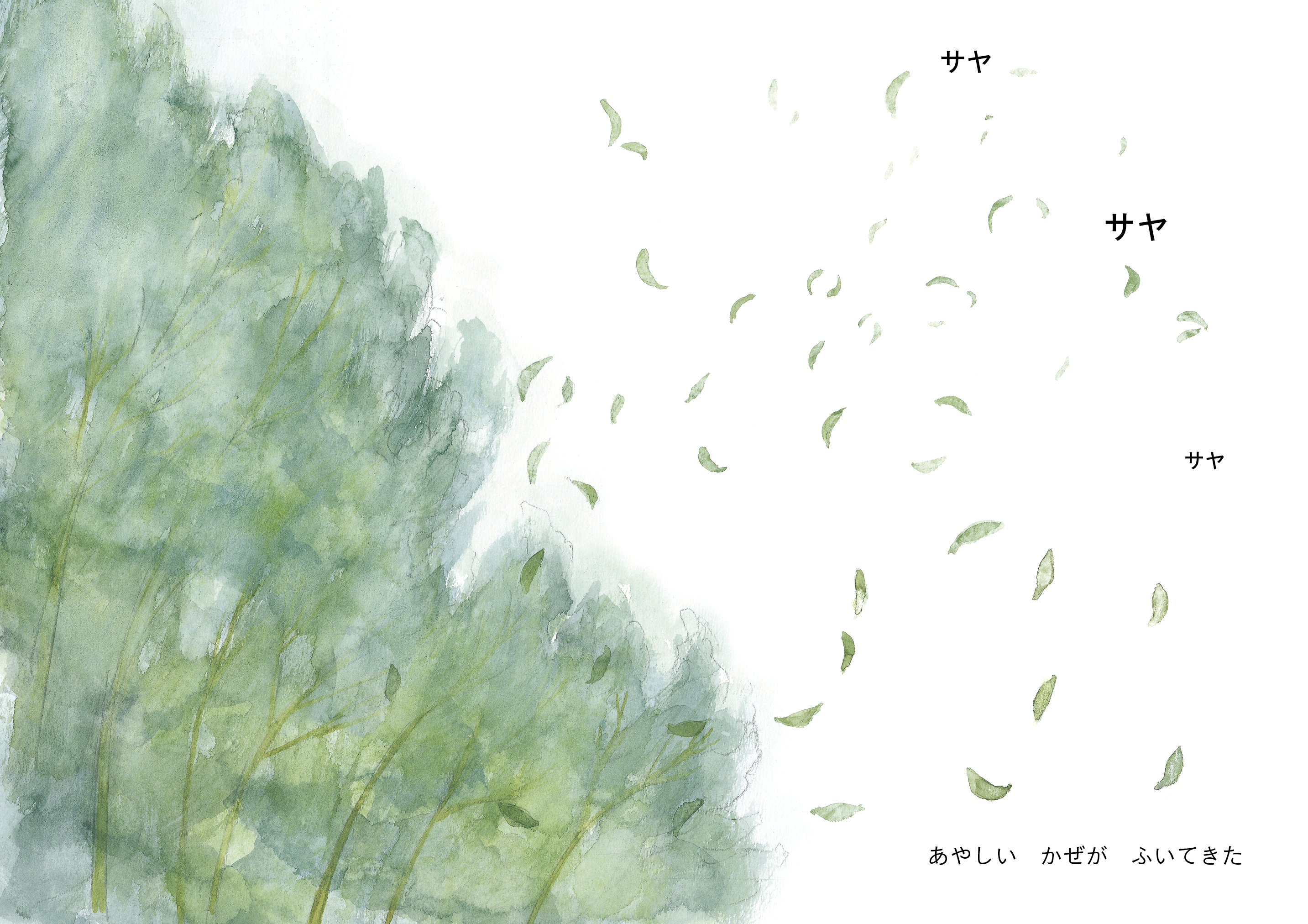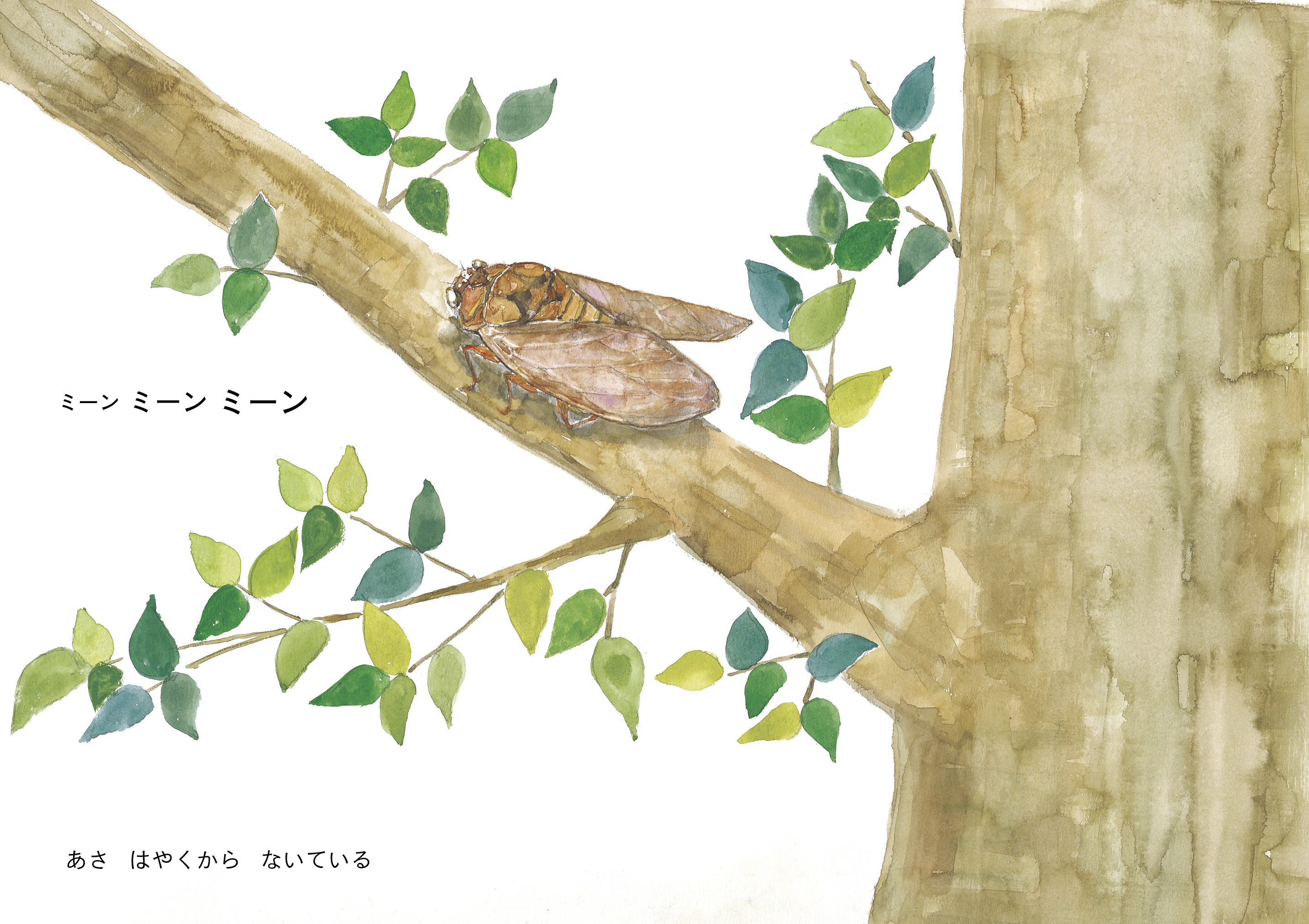 子どもの目線から見た印象的な夏の場面を水彩画でていねいに描き、シンプルな言葉で紡ぎました。