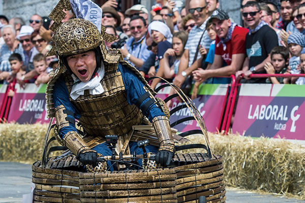 スペイン・ビトリアでのボックスカートレース参加に誘われ、コースの下見に行ったのはまだ雪の降る頃。それから虎斑竹でソープボックスカー、あわせて虎竹アーマーと名付けた竹の鎧も生み出しました。これをひっさげ再びスペインへと乗り込んだのは8月上旬、レースでは特別感謝賞に輝きました。