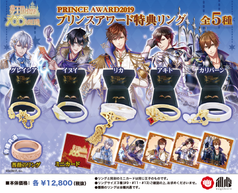 株式会社和心は2020年1月7日より【夢王国と眠れる100人の王子様】プリンスアワード「グランプリ賞」で一位~五位を獲得した王子をイメージしたリングの受注を開始いたします。