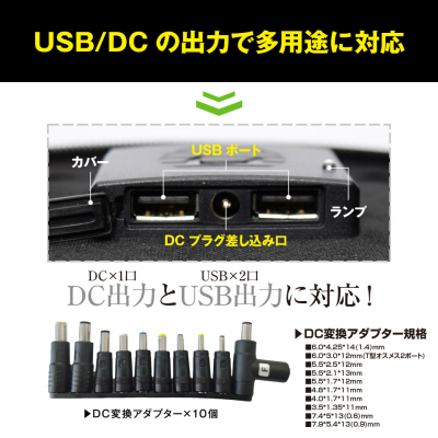 自家発電なのでキャンプ、ハイキング、BBQなどのアウトドア、運動会、災害時の急なスマホの充電切れや家電製品の使用に幅広く使用できます。