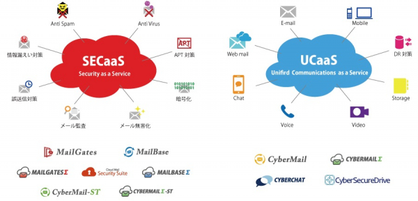 電子メールソリューションの分野におきましては、国内で約 15,000 社以上の企業で利用されている高性能Web メール機能搭載の統合型セキュア・メールサーバシステム『CyberMail』、内部統制・コンプライアンス対策として国内メーカー実績 NO.1(富士キメラ総研 「2009~2019 ネットワークセキュリティビジネス調査総覧」より)のメール監査・メールアーカイブシステム『MailBase』、未知のスパムも情報漏洩の脅威からも高い投資対効果でシャットアウトできるアンチスパムシステム『MailGates』を開発、販売しております。2009 年より自社の電子メールシステムの技術をクラウド・SaaS型の『CYBERMAILΣ』として提供するサービス事業も開始しました。