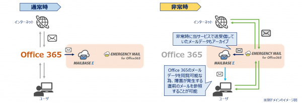 併せて当社が提供するメールアーカイブサービス『MAILBASEΣ』(メールベースシグマ)を活用することで、Office 365と当サービス両方のメールデータをアーカイブでき、Office 365が利用不能な間でも、過去のメールを閲覧することが可能になります。