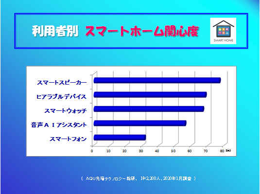 海外に比べ、スマートスピーカーの普及がやや遅れているとみられる国内では、スマートスピーカーの他に、日本人に合うようなデバイス、たとえば、スマート家電コントローラ、あるいは、ヒアラブルデバイスなどの可能性が大きいと弊社では見ている。