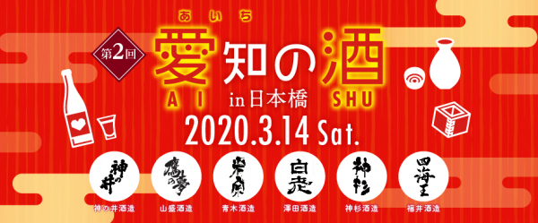 愛知県から、神の井酒造「神の井」、山盛酒造「鷹の夢」、青木酒造「米宗」、澤田酒造「白老」、神杉酒造「神杉」、福井酒造「四海王」の6蔵が日本橋に集まり、蔵元・蔵人自らが自慢の酒を振舞います。