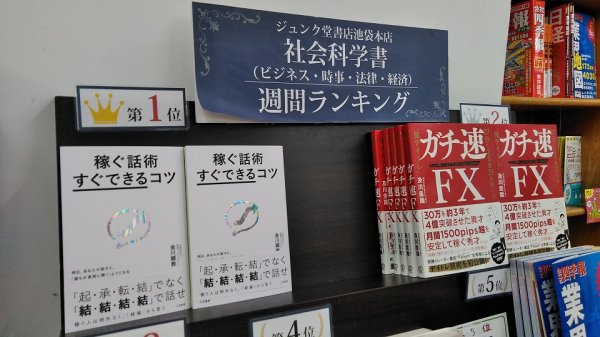 株式会社三笠書房(東京都千代田区/代表取締役:押鐘太陽 http://www.mikasashobo.co.jp )は、1月27日に『稼ぐ話術「すぐできる」コツ: 明日、あなたが話すと、「誰もが真剣に聞く」ようになる』著者金川顕教が、ジュンク堂書店池袋本店の1月20日から26日の期間で【社会科学書】(ビジネス・時事・法律・経済)のランキングにて1位を獲得いたしました。