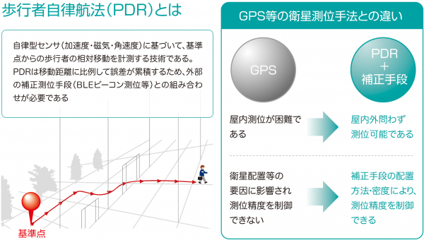自律航法は、2015年頃よりGPS外環境下での測位を可能にする画期的技術と取り沙汰されて来たものの、機器(センサーモジュール)装着を前提としているため、モジュールのサイズが大きい・重い・連続稼働時間が短い、といった課題のため本格的な普及には至っていませんでした。「PDRplusシステムオンプレOne」は、センサーモジュールとしてAndroid系スマートフォンを使い、誰でも何処でも安価に即実行可能なオンプレミス型システムとなります。