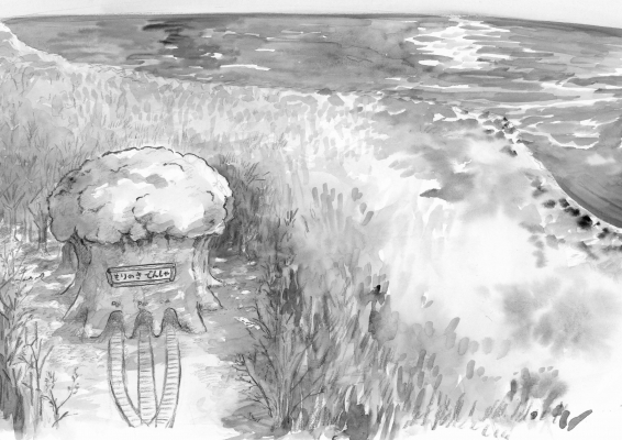 復興を目指す町に堤防と電柱が張り巡らされても、もりのきでんしゃ「りん」の目からは涙がこぼれ続けます。