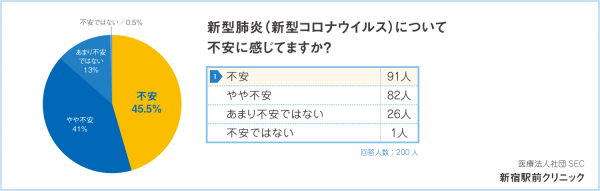 日本において、新型コロナウイルスに関連した感染症の症例報告があったことに伴い、医療法人社団SEC新宿駅前クリニック(https://www.shinjyuku-ekimae-clinic.info/)は「新型肺炎の対策及び意識調査」を行いました。
