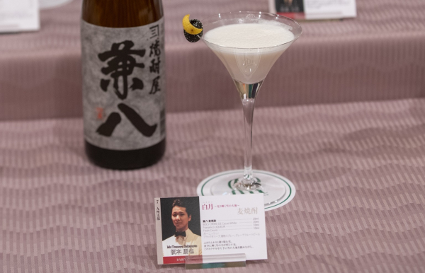 坂本さん考案のカクテル「白月」は、麦の香りと深みある味が楽しめる本格麦焼酎「兼八」をベースに、上品なミルクチョコレートのフレーバーのリキュール「Crème de Cacao White」とヘーゼルナッツ・リキュール「Franjelico RIQUEUR」、そしてフレッシュクリームで仕上げた、まるでデザートのような甘さが引き立つカクテル。見た目の可愛さも兼ね合わせた女性にも飲みやすいカクテルで、会場の女性客も本格麦焼酎の香りと甘い香りのカクテルに酔いしれた。