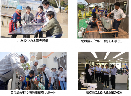 小学校での太陽光授業、幼稚園の「カレー会」をお手伝い、自治会が行う防災訓練をサポート、