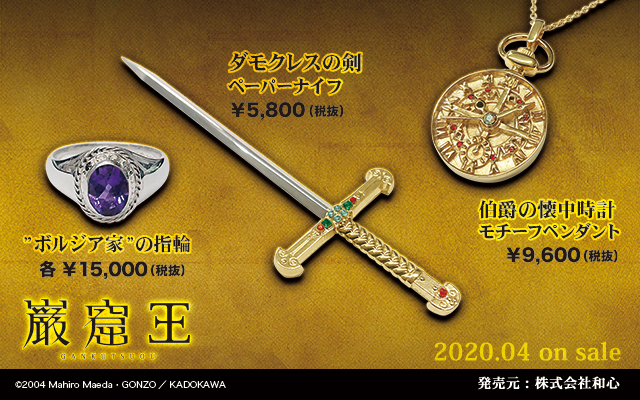 株式会社和心は2020年4月に、TVアニメ【巌窟王】の世界観を再現した、アクセサリーとペーパーナイフを発売します。