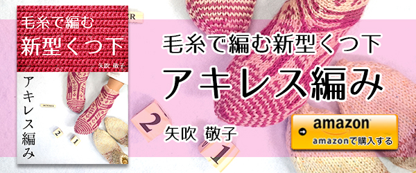 約20年前に、手編みの靴下のかかとの引き返しが、「何とかならないかなぁ」と考えていた時に、この「アキレス編み」という編み方を思いついた。かかとがフィットして暖かく、編み方がシンプルなのに応用が利きバリエーションが豊富なので楽しめる。アキレス編みは、編み始めが手軽なので、一足出来上がるとまた編んでみたいと思う編み方です。本書では実際に編んだ靴下を紹介し、編み方も学ぶことができます。