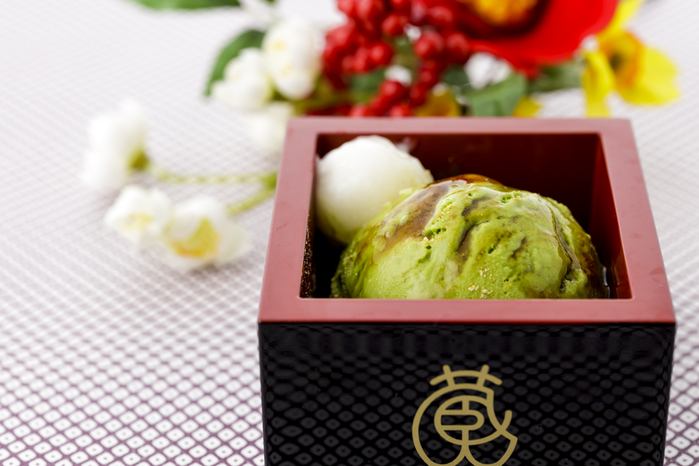 ほろ苦い風味の抹茶アイスにあわせたのは、何も加えていない群馬のナチュラルな日本酒「群馬ナチュラル」です。