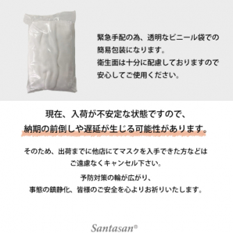 つきましては、綿100%ガーゼマスクの手配が出来ましたので、同社ブランド Santasan(http://santasan.net/) にて 2020年3月15日発売!のマスクを数量限定で予約開始します。