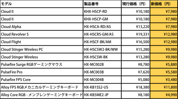 春という新しい門出の季節を祝い、HyperXでは、Cloud Flight、Cloud Stinger Wireless、その他ヘッドセット、キーボード、マウスを含む10種類のゲーミング周辺機器の価格見直しを実施することを発表しました。新しい生活を新しいアイテムで彩り、ゲームを楽しみましょう。