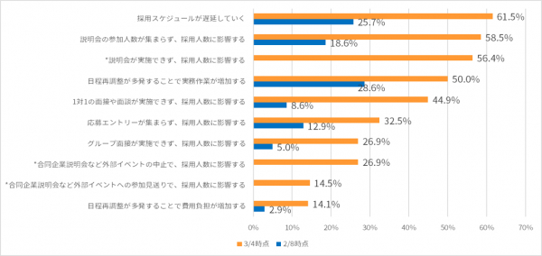 ■採用スケジュールの遅延、採用人数への影響が懸念事項
