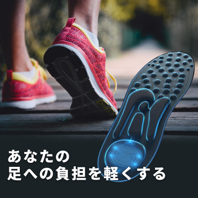 足裏全体にかかる圧力を分散し、負荷の軽減を体感できる特殊構造のインソールです。